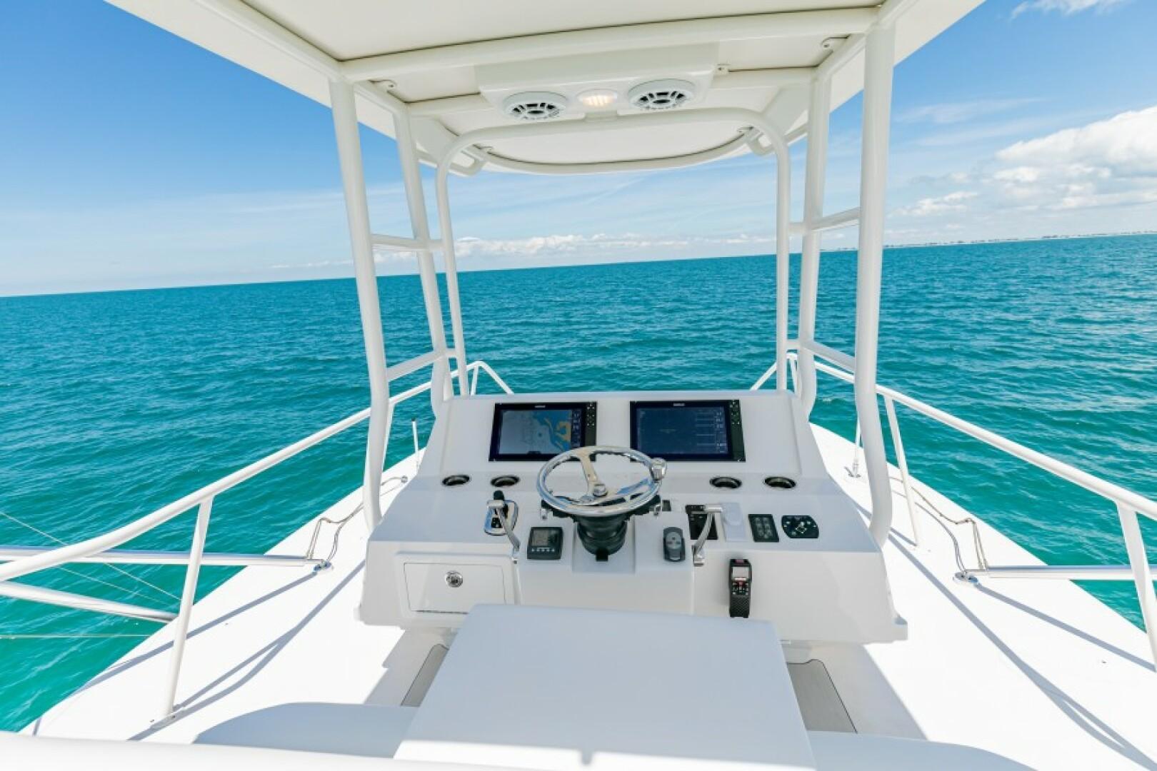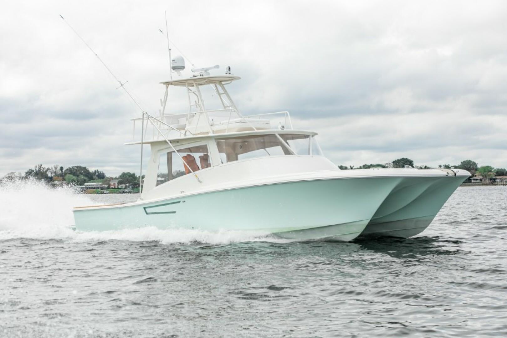 2020 48 Calcutta Catamaran – Calcutta is located here in beautiful Palmetto, FL and builds top-quality offshore catamarans. They take pride in every detail and doing things the right way and not the easy way. The Calcutta 480 is a one-of-a-kind boat that boasts very unique features. You have a 17ft beam that provides a huge cockpit that any professional or recreational fisherman will surely appreciate. Upon the bridge, you have a full walk-around tower with a forward-facing sun lounge. This area is great for spotting fish and also a comfortable spot to relax. The Calcutta 480 is powered by twin Cummins 550 with Arneson surface drives. Couple that with the incredibly efficient Calcutta hull design and you get one amazing fishing and cruising machine. The surface drives provide great trimming abilities to customize your ride and allow you to troll at faster speeds while still producing a clean wake. With the 600 Gallon fuel capacity and great efficiency, the Calcutta 480 is the perfect offshore and long-distance cruising platform. Call or text today to schedule a showing!