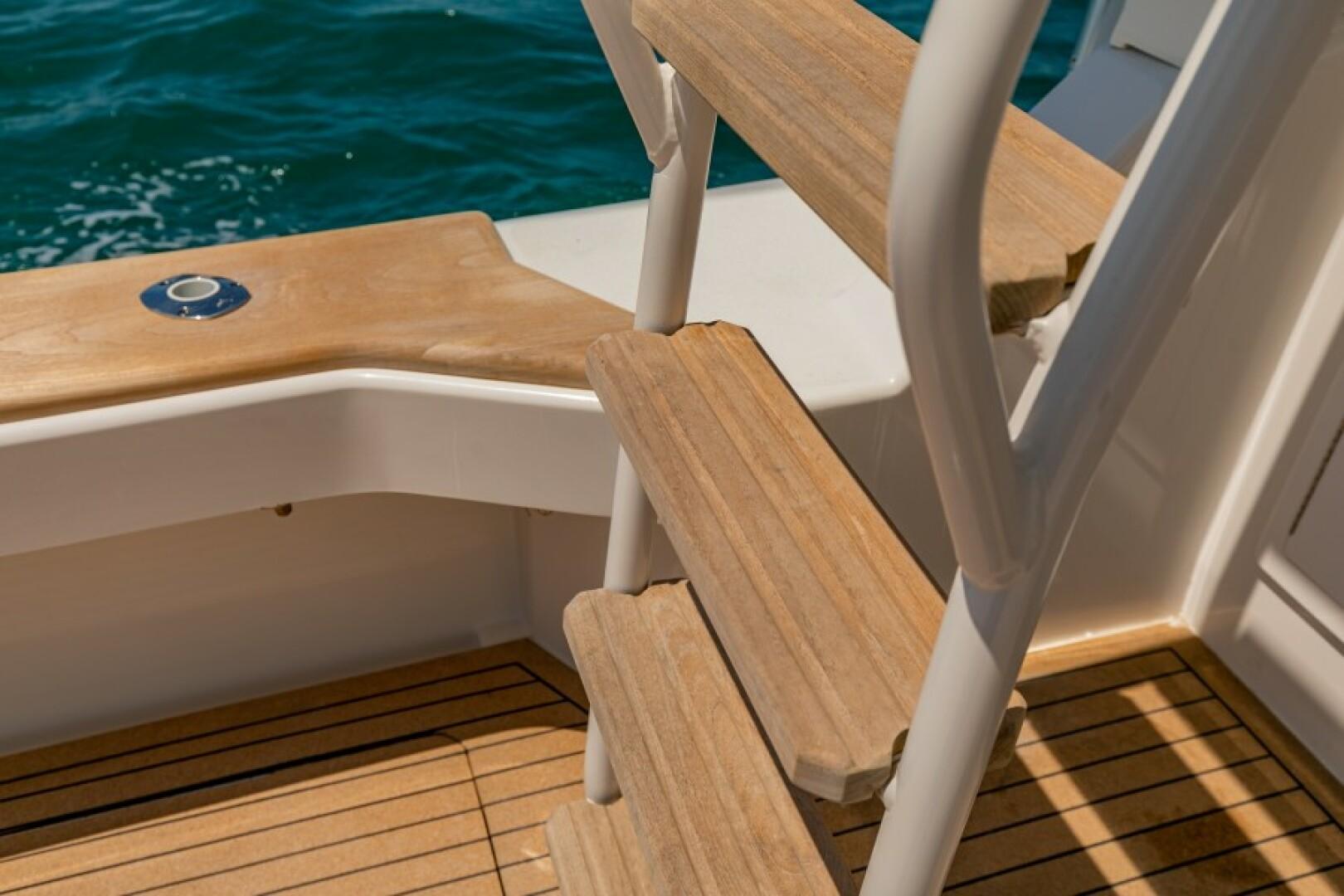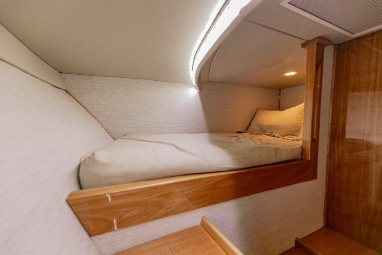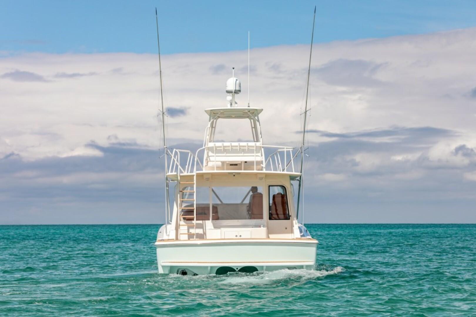Standard Features Custom Hull Color: Aquamist Upgrade Carbon/Glass Infused Hull and Major Parts – Incremental Cost Difference Onan 13kW Generator Carbon Infused Dive Platform Acrylic Tackle Station Cook n Dine Stainless Tepanyaki Cook-top Kenyon Ceramic Single Burner KRA Refrigerated Floor Box Eskimo Ice Maker 32 GPH Watemaker/ RO Purifier Dual Intake for Dock Water and Saltwater MarineDeck 2000 Helm Station, Cockpit and Swim Platform ACR LED Searchlight with Wireless Remote Dometic STIIC Digital Controller Runs A/C, Freezer and Ice Maker from Helm Resin Infused Hardtop, Second Station with Carbon Hard Buggy Top Rupp Hydraulic Outriggers Solid Teak Covering Boards Upgraded Stainless and Sileather Helm Chair Upgraded Memory Foam Mattresses Custom Bedding – Quilts, Sheets, & Pillows Upgraded- VARC Dometic A/C Chiller System Upgraded EZ2CY Eisenglass Marine Mat/SeaDeck – 2nd Station Decking Upgraded Solid Entry Cabin Door Upgraded Teak Look Helm Pod Lumitec Razor Light Bar Stainless Anchor – 3/8” Chain, Swivel. ¾” 8- Plait Anchorline Maxwell Windlass and Roller with Remote AGM Battery and Charger Glendinning Controls and Joystick – 2 Station Dual Wireless electric Teaser Reels in Custom Fabricated Aluminum Power-Coated Box Electronics and Stereo Fireboy Fire Suppression System, Engine room Ventilation Temperature Control, Mist Eliminator Pair Spare Veem Props Copper Bottom Paint Burnished to 600 Grit Eisenglass and Covers for a Second Station Optional Equipment NSS EVO3 16” Upper Station NSO EVO3 24” Main Helm NSO EVO3 19” Main Helm NEP-2 Network Boxes S5100 Sonar Box RS905 VHF Box Wireless VJF HS35 Sonar Hub Box Side Scan Transducer Airmar 265 L/H Transducer Airmar 175 SS-W Transducer Simrad OP50 Remotes Flir Remote Control Camera Flir Controllers Samsung N5300 Monitors Direct TV H24-700 Receivers RI12 Radar Box Simrad Halo Radar Simrad Precision 9 Compass Fusion MS-RA770 Stereo Simrad GS25 GPS Antenna Tracvision TV5 dome Satellite Underwater Light Spectrum Color with Controls Dolphin 12-volt Battery Chargers Simrad SG05 Autopilot Integration Interface C-Zone Digital Switching System Bluewave 4 channel Amplifiers Bluewave Mono Amp 7.7 Bluewave Speakers Bluewave Enclosed Subwoofers