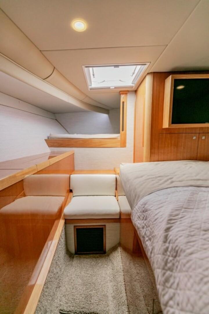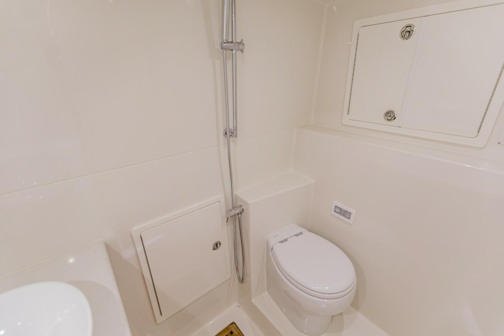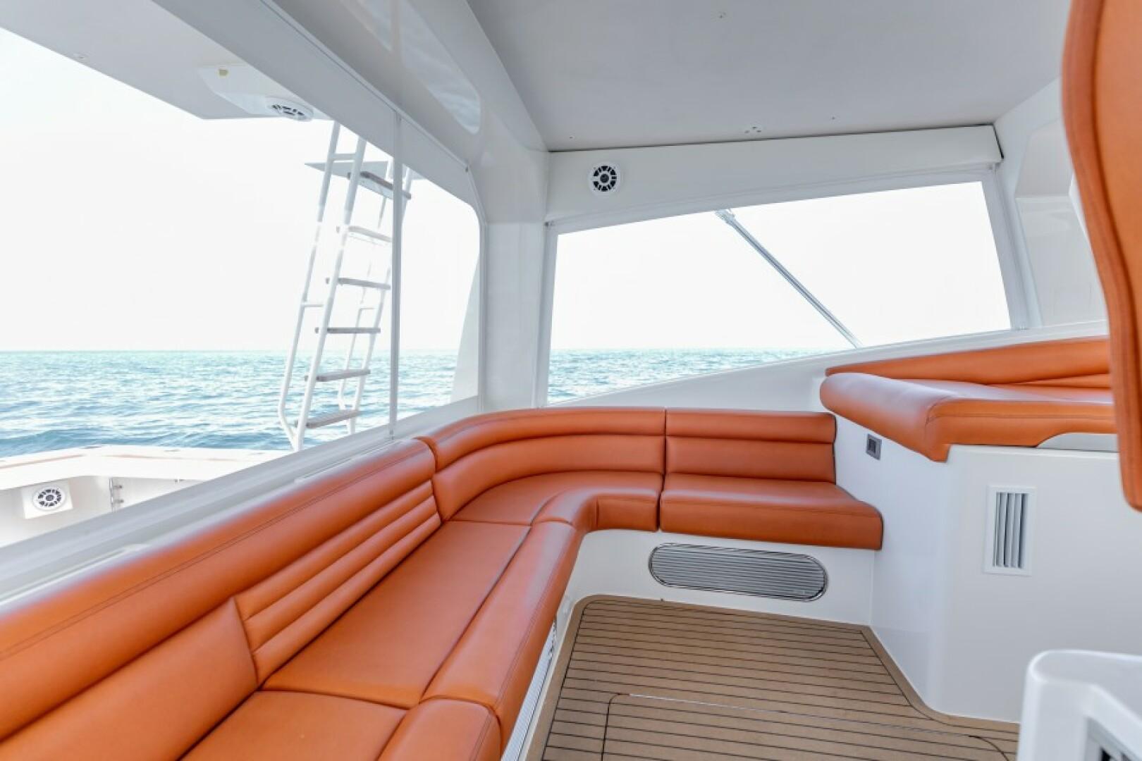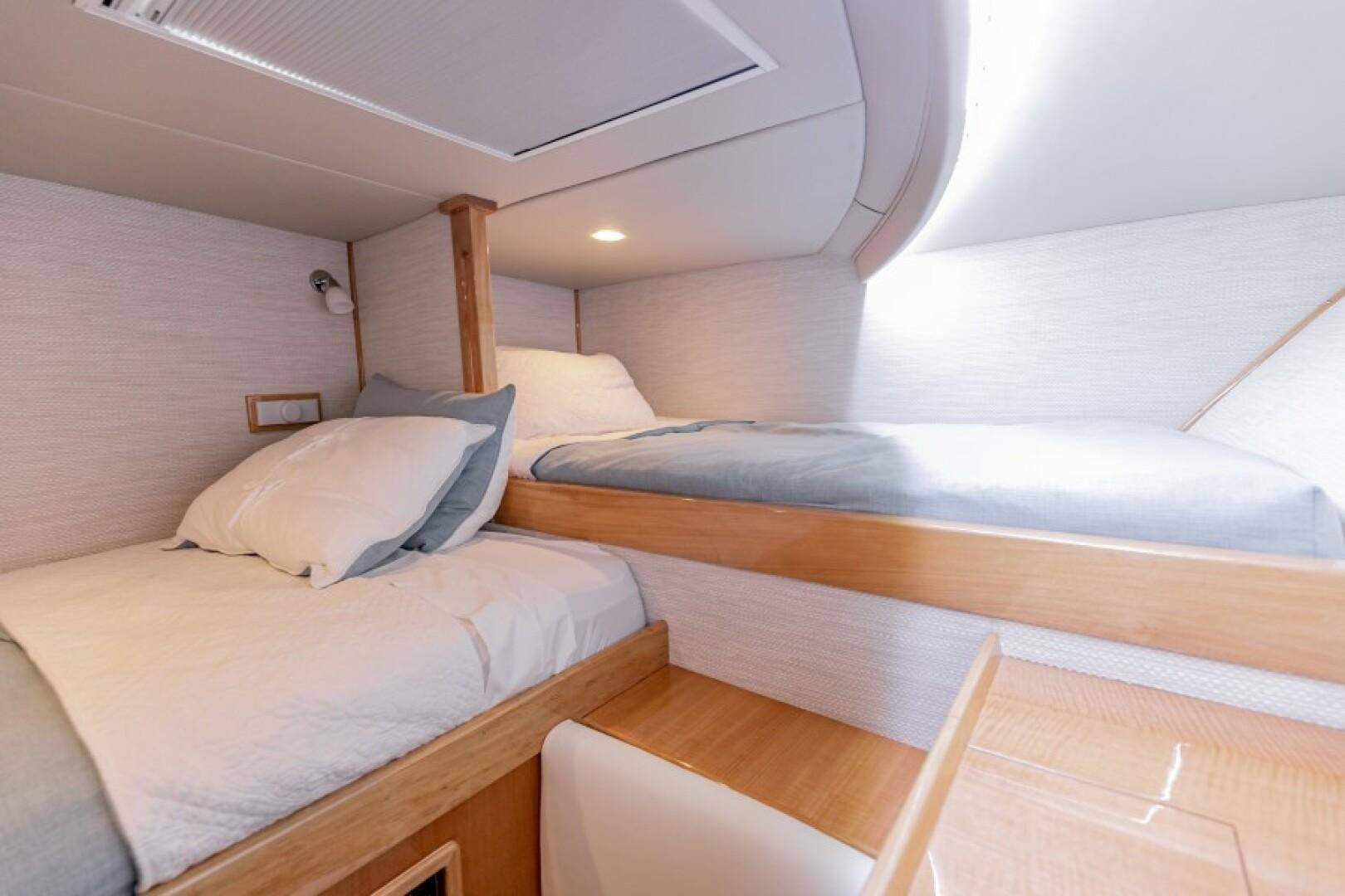 Standard Features Custom Hull Color: Aquamist Upgrade Carbon/Glass Infused Hull and Major Parts – Incremental Cost Difference Onan 13kW Generator Carbon Infused Dive Platform Acrylic Tackle Station Cook n Dine Stainless Tepanyaki Cook-top Kenyon Ceramic Single Burner KRA Refrigerated Floor Box Eskimo Ice Maker 32 GPH Watemaker/ RO Purifier Dual Intake for Dock Water and Saltwater MarineDeck 2000 Helm Station, Cockpit and Swim Platform ACR LED Searchlight with Wireless Remote Dometic STIIC Digital Controller Runs A/C, Freezer and Ice Maker from Helm Resin Infused Hardtop, Second Station with Carbon Hard Buggy Top Rupp Hydraulic Outriggers Solid Teak Covering Boards Upgraded Stainless and Sileather Helm Chair Upgraded Memory Foam Mattresses Custom Bedding – Quilts, Sheets, & Pillows Upgraded- VARC Dometic A/C Chiller System Upgraded EZ2CY Eisenglass Marine Mat/SeaDeck – 2nd Station Decking Upgraded Solid Entry Cabin Door Upgraded Teak Look Helm Pod Lumitec Razor Light Bar Stainless Anchor – 3/8” Chain, Swivel. ¾” 8- Plait Anchorline Maxwell Windlass and Roller with Remote AGM Battery and Charger Glendinning Controls and Joystick – 2 Station Dual Wireless electric Teaser Reels in Custom Fabricated Aluminum Power-Coated Box Electronics and Stereo Fireboy Fire Suppression System, Engine room Ventilation Temperature Control, Mist Eliminator Pair Spare Veem Props Copper Bottom Paint Burnished to 600 Grit Eisenglass and Covers for a Second Station Optional Equipment NSS EVO3 16” Upper Station NSO EVO3 24” Main Helm NSO EVO3 19” Main Helm NEP-2 Network Boxes S5100 Sonar Box RS905 VHF Box Wireless VJF HS35 Sonar Hub Box Side Scan Transducer Airmar 265 L/H Transducer Airmar 175 SS-W Transducer Simrad OP50 Remotes Flir Remote Control Camera Flir Controllers Samsung N5300 Monitors Direct TV H24-700 Receivers RI12 Radar Box Simrad Halo Radar Simrad Precision 9 Compass Fusion MS-RA770 Stereo Simrad GS25 GPS Antenna Tracvision TV5 dome Satellite Underwater Light Spectrum Color with Controls Dolphin 12-volt Battery Chargers Simrad SG05 Autopilot Integration Interface C-Zone Digital Switching System Bluewave 4 channel Amplifiers Bluewave Mono Amp 7.7 Bluewave Speakers Bluewave Enclosed Subwoofers