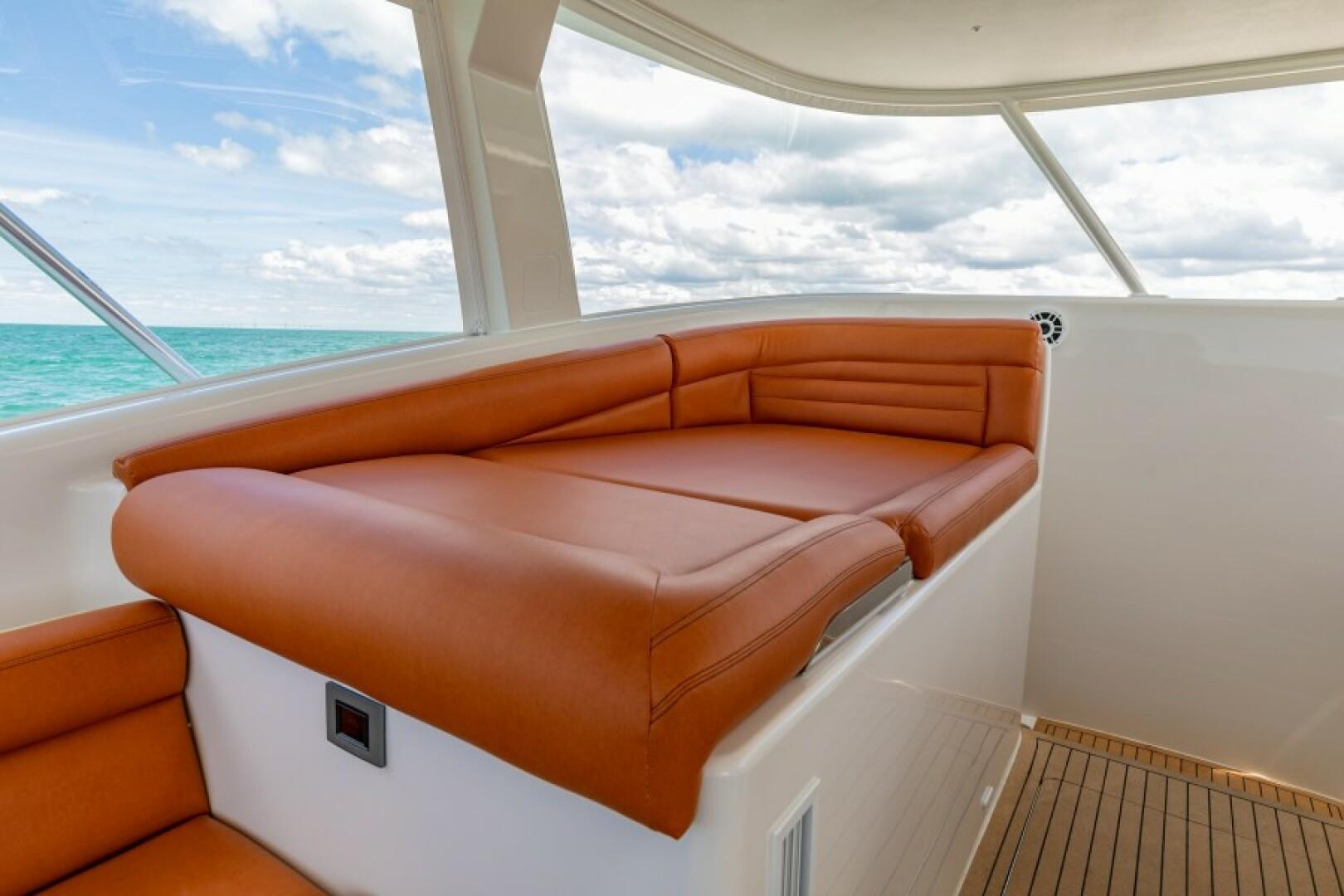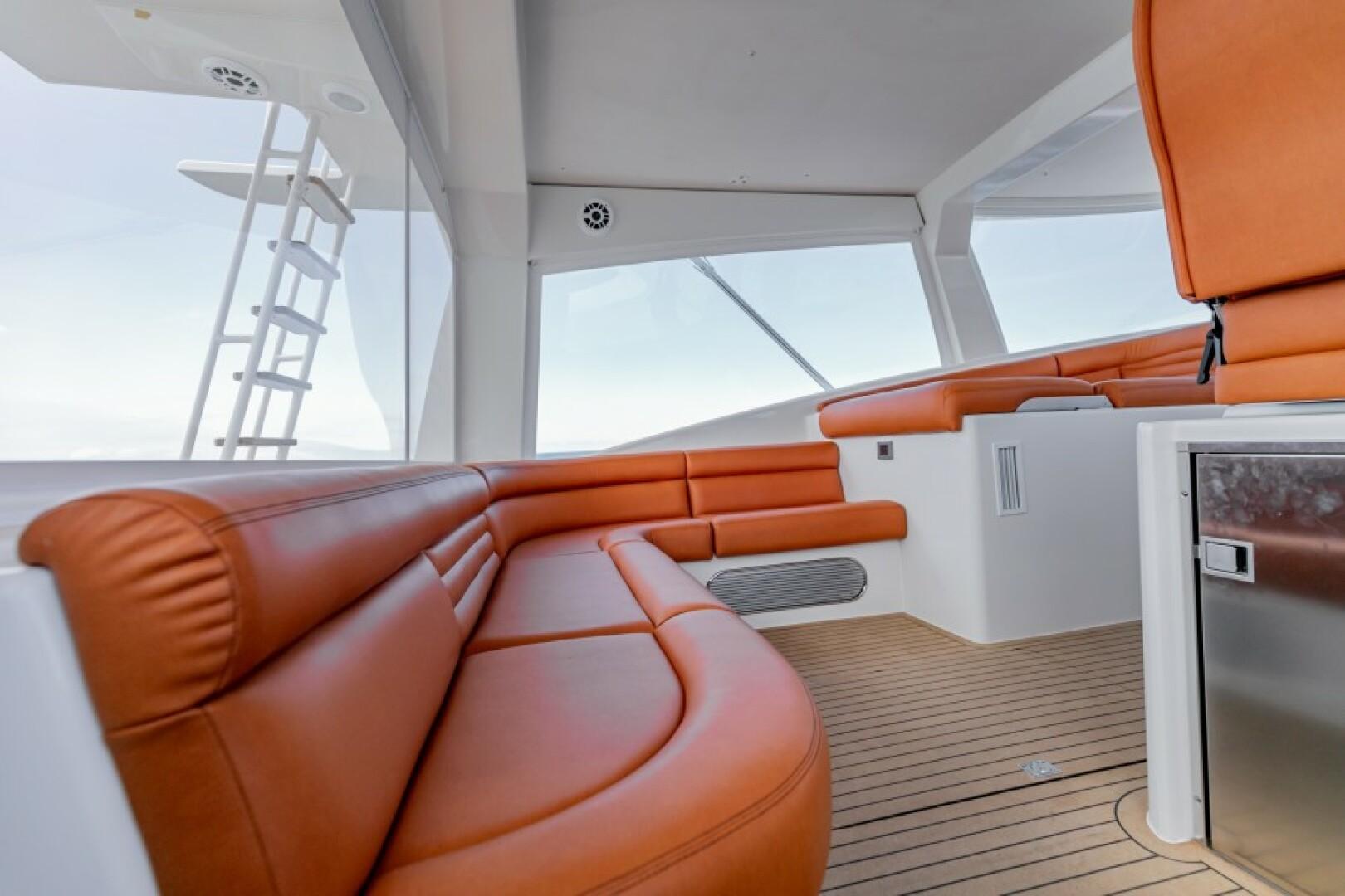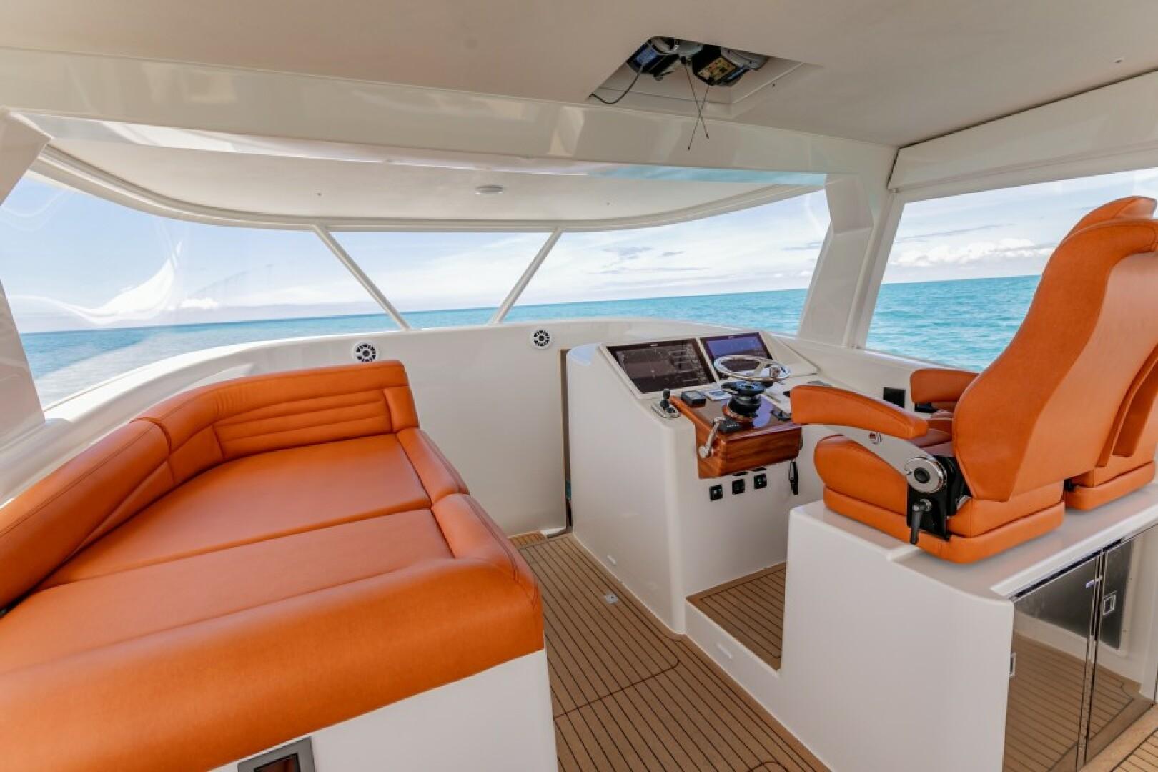 Luxury on the 2020 Calcutta 480 Catamaran is defined through its deluxe upgrades and high-end amenities. Notable features include a Stainless and Sileather Helm Chair for supreme comfort and control, a high-performance VARC Dometic A/C Chiller System for an optimal onboard climate, and an advanced Lumitec Razor Light Bar for enhanced visibility. Entertainment is bolstered by a comprehensive electronics and stereo system, with optional Simrad and Fusion systems available. The yacht also features an underwater light spectrum with controls for creating a visually stunning ambiance at night.