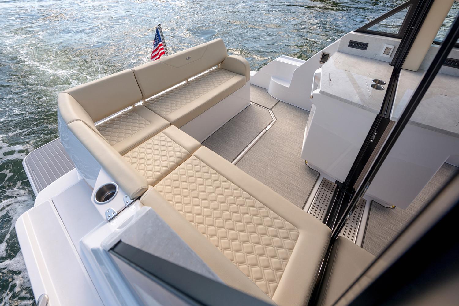 The Regal 38 Grande Coupe is unparalleled in its luxurious style, size, and upscale amenities. With endless entertainment and relaxation, whether in the sun or the salon the 38 Grand Coupe sets a new standard.
