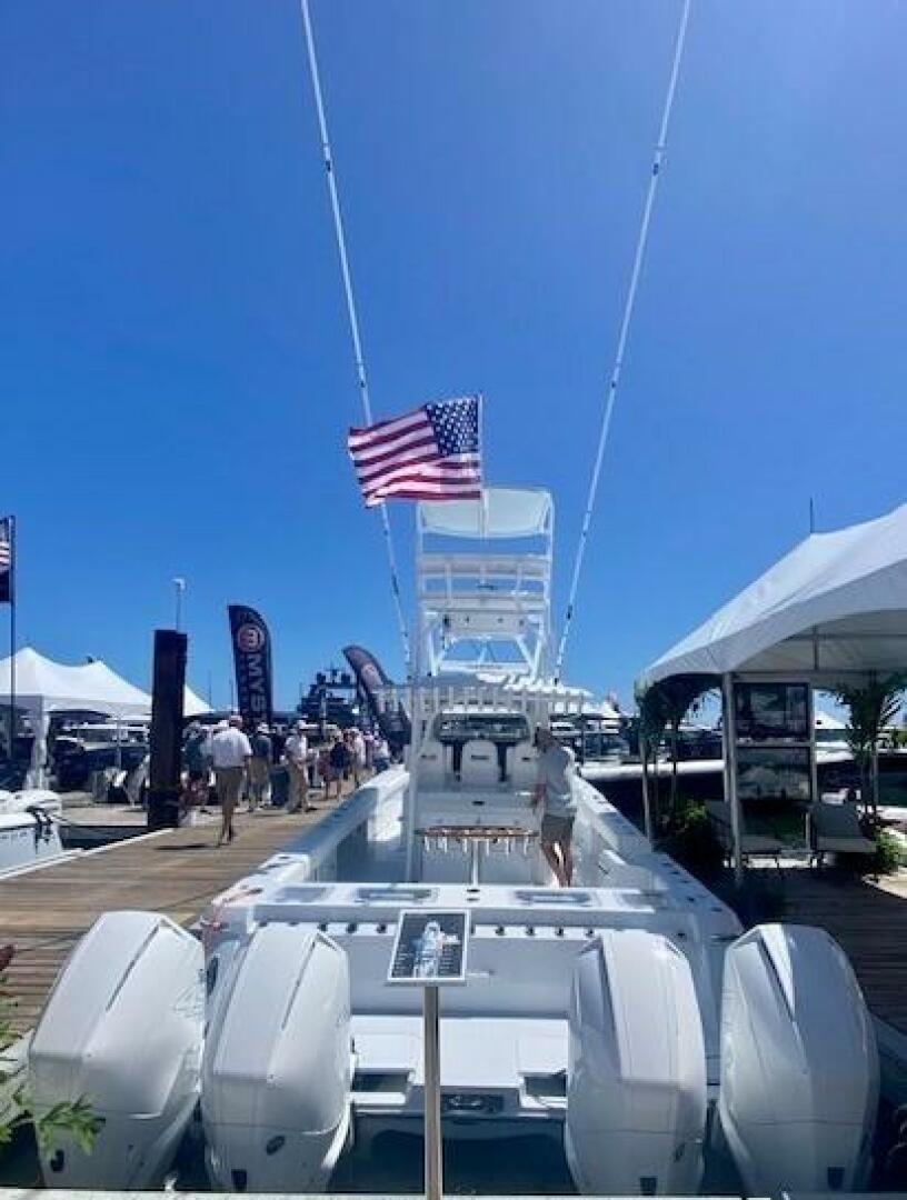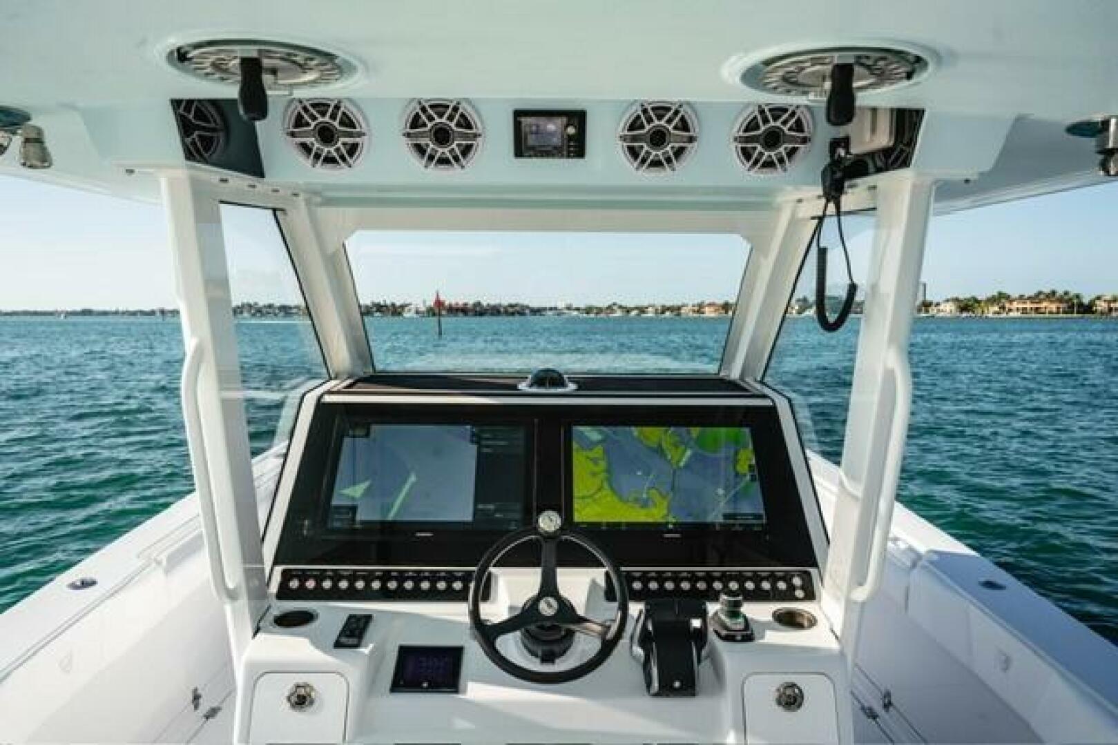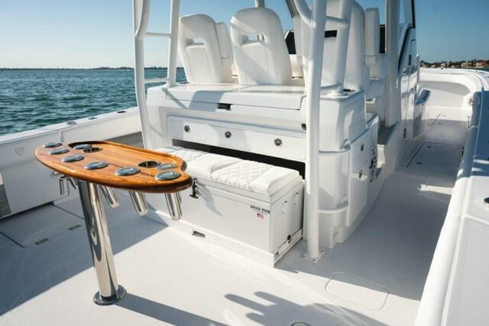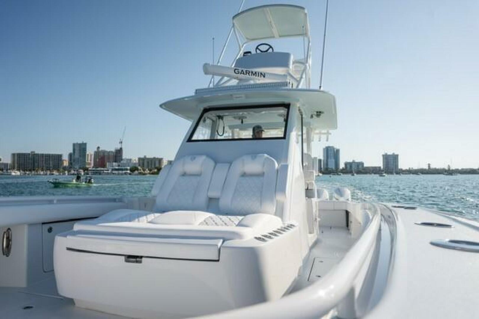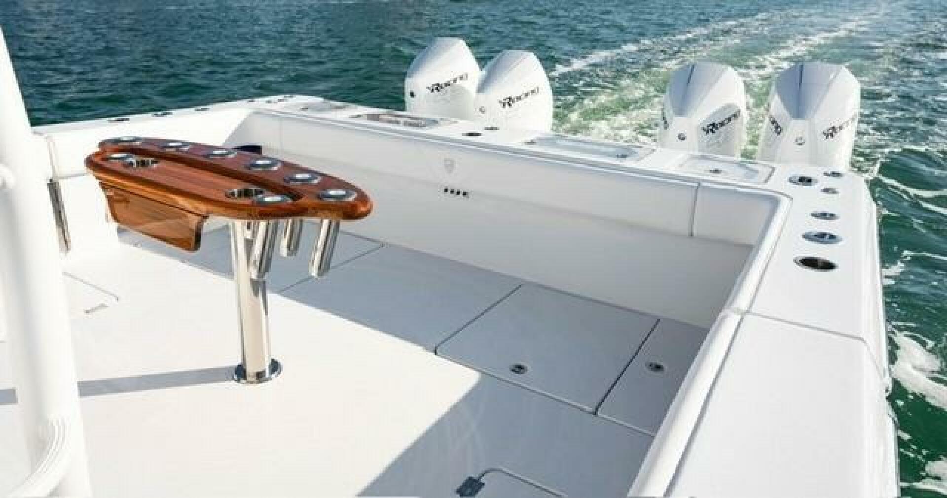 Miscellaneous Options Stainless Steel Rubrail Upgrade Custom Hardtop Rod Rack (2) Chill Plates are in Port Aft Deck Well Hatch Refrigerater fwd lounger w/ dividers Dometic 12VDCii Air Cockpit Air Conditioning Additional Hooker Sea Chest w/ (2) 2500 GPH Pumps 100 Gallons Additional Fuel Upgraded to Black Steering Wheel Custom LP Tackle Storage Release Marine 8-Hole Rocket Launcher w/ Flush Mount SS Pedestal Add 2nd (non-macerated) drain to all fishboxes Additional 5yrs 450R Platinum Warranty until 3/3/29 Additional 2 year Engine Warranty available for purchase Windlass Rebels EZ-5 Windlass Kit Anchor Chain 600′ Dynema Rode Entertainment System (6) JL Audio 6″ Speakers (4) JL Audio 8″ Speakers (4) 10″ JL Audio Subwoofers (3) JL Audio MV 1000/5i AMPs Speaker/Subs Mounted in Recessed Rings Electronics (2) Garmin 8624 MFDs (2) Garmin 19x GPS Antennas Garmin GRID 20 Remote Garmin GMR Fantom 126 6′ Open Array Radar Garmin GXM54 Satellite Weather/Radio Airmar R111LH 2KW In-Hull Transducer Garmin GSD 26 CHIRP Pro Sonar Module Garmin GTEMP-TH Temp Sensor (2) Garmin VHF315’s with (2) GHS 11 Handsets (2) Odyssey Performance Series 4-D AGMP4D-1300 Batteries (4) Odyssey AGM 31 Engine Batteries Siren Marine MTG Security/Monitoring System Shades and Covers Fwd Shade Aft Shade Livewells Dual 55 Gallon Pressurized Transom Live Wells (2) Hooker Sea Chest w/ (2) 2500 GPH Variable Speed Pumps in each Sea Chest (total of (4) 2500 GPH Pumps) 2″ Stainless Pickup Starboard Deck Well is a Plumbed 55 Gallon Live Well Console Ritchie SS-5000 Compass Forward Lounge Black Acrylic MFD Panel MDI Custom Switch Panel (18) Gemlux Flush Rod Holders Aquatraction Marine Decking Frigid Rigid w/Double Diamond Cushion and Actuator/Slide Leaning Post and Upholstery Single-Row 3 Abreast Helm Seating Raised LP with Storage (2) Yeti Stainless Flush Cupholders (6) Stainless Cupholders Coaming Bolsters Aquatraction Marine Decking Hardtop/Tower (15) Rocket Launcher Rod Holders (2) Digital Marine 4″ VHF Antennas AMG 3-Sided Tempered Glass Enclosure LED Lumitech Navigation Lights LED Spreader Lights Tri Color LED Map Lights Gemlux SS Outrigger Mounts Gemlux 22″ CF Outriggers Powder-Coated Frame/Rod Rack Black Oak 50″ Light Bar Maxel Teaser Reels (Pair) Rear-Facing 8616 Garmin MFD Custom Marlin Tower w/ Controls 12″ Upper Garmin MFD & Rigging Non-Skid on bottom of Hardtop and Buggytop Standard Features Quad Mercury 450R Engines Mercury JPO/Joystick Mercury Vessel View 703 Reverso Engine Flush System MDI Digital Switching Freshwater Wash Saltwater Wash (2) Frigid Rigid™ 784 qt. Fish Boxes (2) Frigid Rigid™ 544 qt. Fish Boxes (6) Gemlux Cleats with Hawse Pipes (2) 10″ Gemlux Box Pull Up Cleats (16) Gemlux Transom Rod Holders (18) Gemlux Deck Rod Holders (4) Gemlux HD Rod Holders (8) Deck Stainless Cupholders (4) Electric Reel Plugs Transom Pocket Ladder Dual Side Dive Doors with Integrated Ladders (2) High Water Alarms (4) 2000GPH Bilge Pumps w/ (2) Float Switches (4) Shadowcaster Multi-Color UW Lights Shadowcaster LED RGB Rope Under Gunnel Lights Shadowcaster RGB Courtesy Lights Powder-coated Bow Grab Rail Lockable Rod Storage Under Gunnel Equipment Holders (4) Dual USB Charging Ports Smart Plug Shorepower System