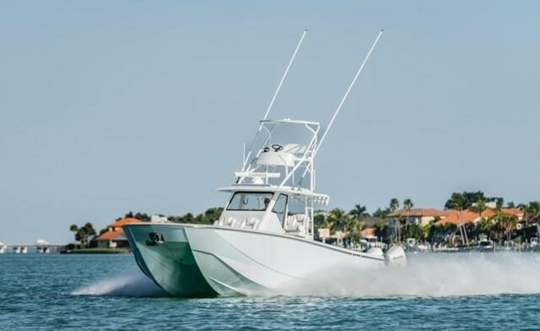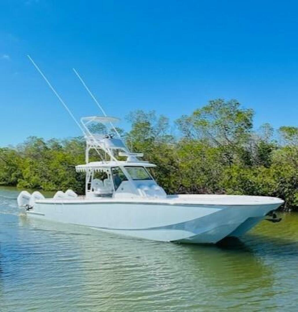 This 2023 40 Barker Boatworks HPC vessel leaves nothing to be desired in ride and performance. She has been further enhanced and highly customized as one of the most well-equipped and detail-oriented Barker builds to date. This is the ultimate package at the highest level of custom quality for offshore fishing or everyday cruising. Enjoy spacious forward lounge seating with massive refrigeration below. Storage and in deck fish boxes are the theme bow to stern for no shortage of either. Whether you are fishing or cruising, you can enjoy the comfort and convenience of multiple chill plate refrigeration and helm A/C. Look no further than this stellar Barker Cat ride to meet all your needs. Notable Features: Quad Mercury 450 Racing Engines Mercury JPO/Joystick Custom Marlin Tower w/ Controls Release Marine SS Pedestals & Slides Double Diamond Pleat Upholstery Forward and Aft Shades Black Oak 50″ Light Bar (18) Gemlux Flush Rod Holders Plumbed 55 gal. In-Deck Wells Hooker Sea Chest with (2) 2500 GPH Variable Speed Pumps for live wells Additional Hooker Sea Chest with (2) 2500 GPH Variable Speed Pumps Rebels EZ-5 Windlass Kit with Anchor, Chain & 600′ Dynema Rode 100 Gallons Additional Fuel Custom Refrigerated Storage (532 qt) Below Fwd Lounge Seating Custom Deck at Helm and Companion Floor as well as Below Helm Console **Updated Photos Coming Soon**
