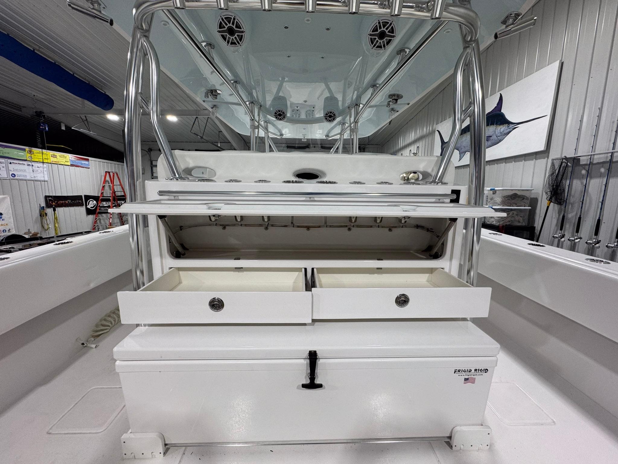 44′ 2024 Contender 44 ST,POWERED BY FOUR YAMAHA XTO 450 V8S WITH 0 HOURS!FEATURING: M-Series fiberglass hard top with slant-cut speaker boxes Triple Llebroc helm seats with footrests and rear stadium seating Electric coffin box lounge with lift and console integration Livorsi 1050 trim tabs for ultimate ride performance XL sea chest livewell system with Rule 3700 GPH pumps Ice blue livewell interior and undergunnel LED lighting 30 AMP shore power with charger and custom wiring setup Side entry swim door and integrated Garelick 6-step ladder Console berth A/C with helm vent and teak interior accents 100-gallon extra fuel capacity and brushed Edson steering wheelSCHEDULE YOUR VIEWING OF THIS FLAGSHIP BUILT FOR BIG WATER DOMINANCE TODAY!