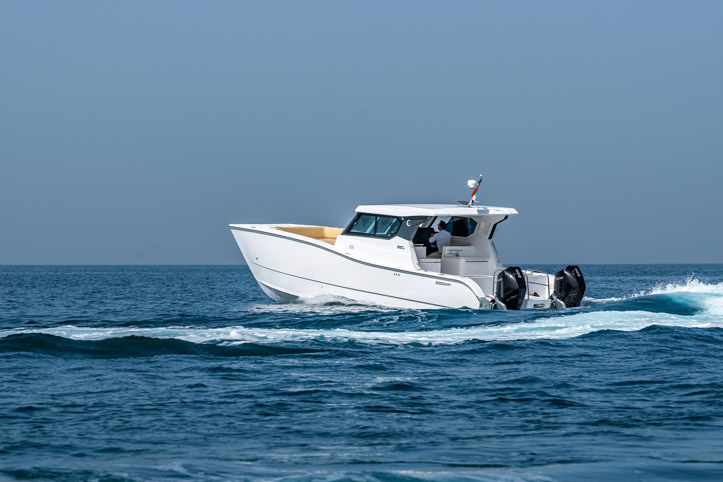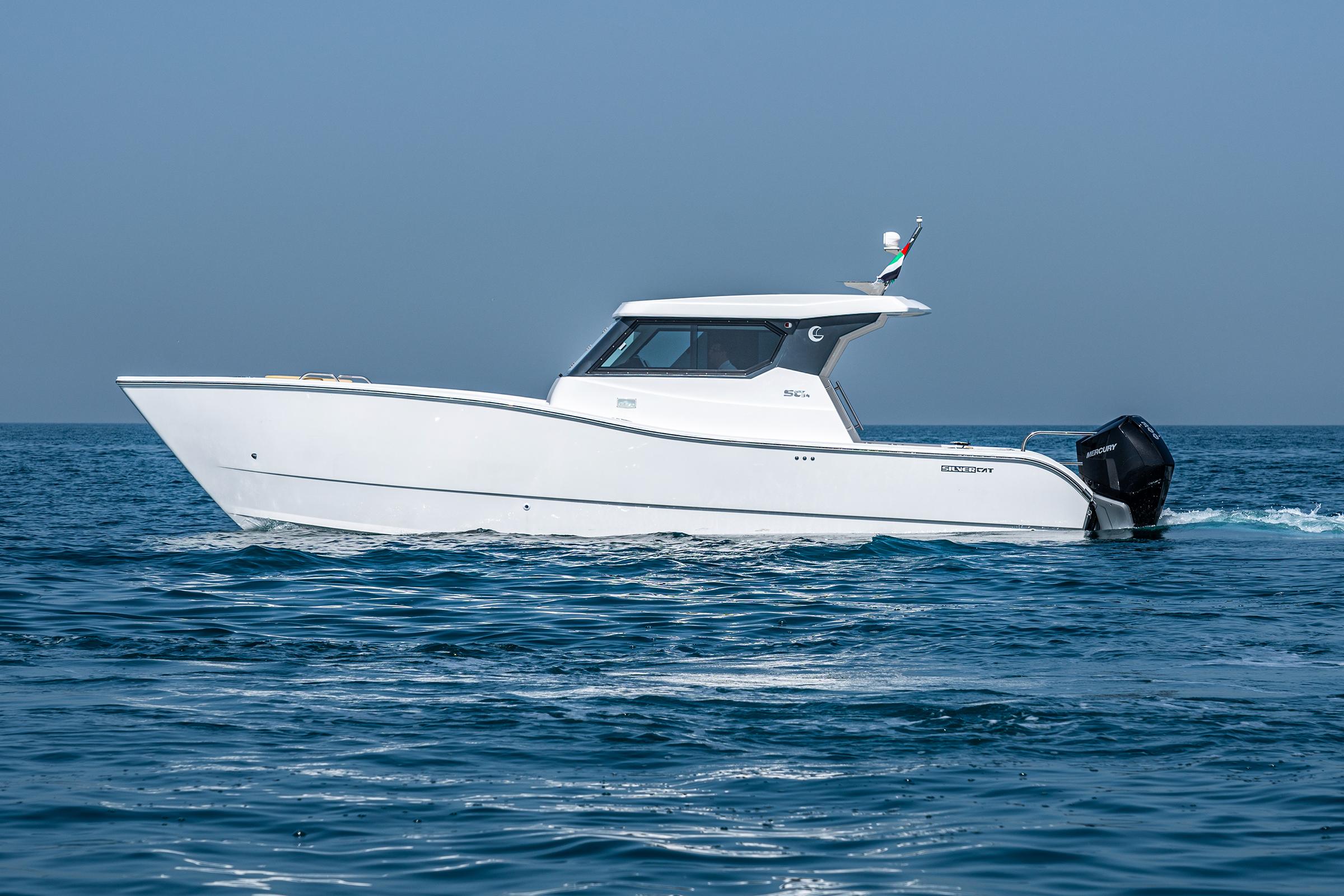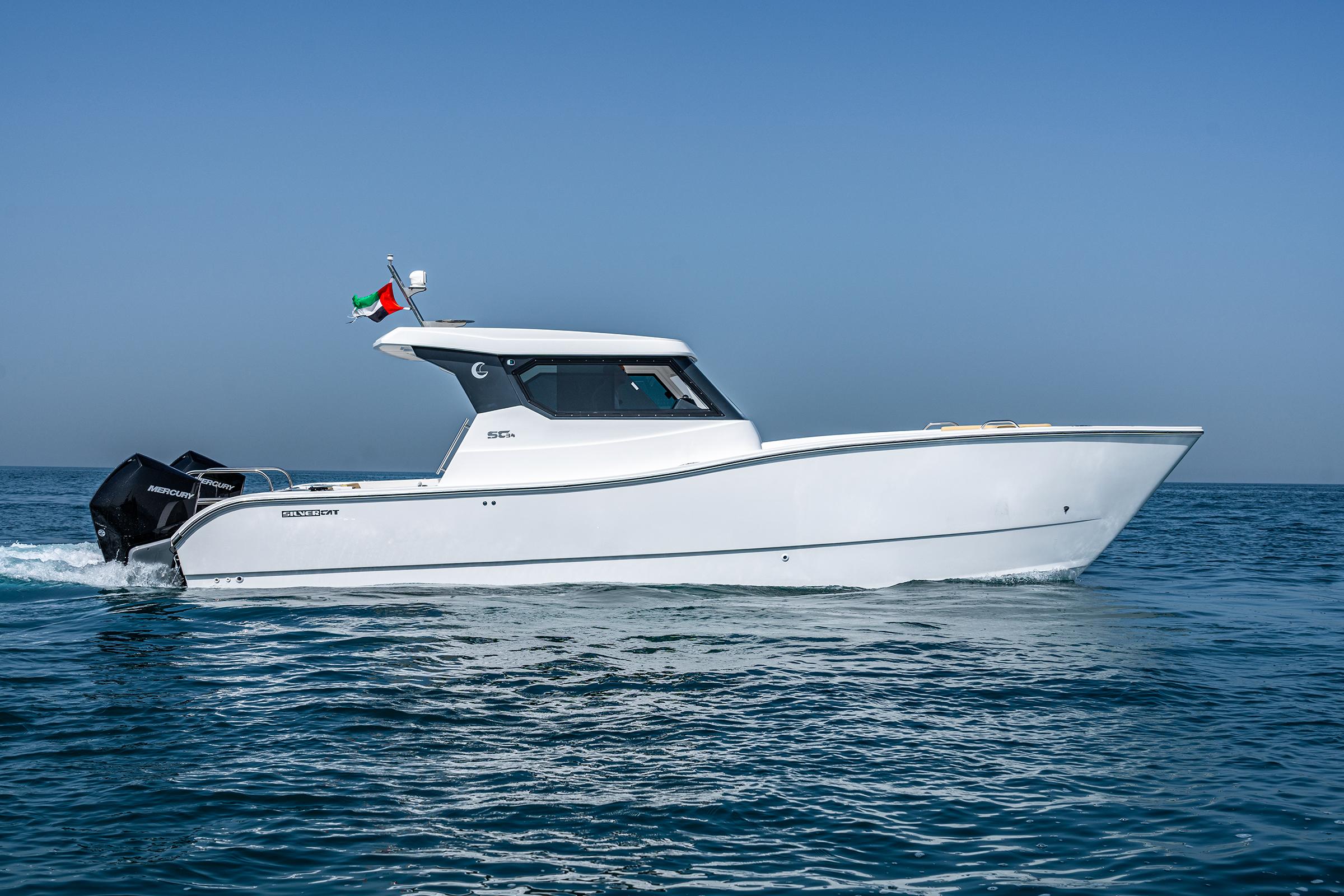 DescriptionMulti-functional and multi-faceted with superb hull that has been re- fined for the high seas. The striking Silver CAT34HT features superb finishes and an ocean-going hull that has been refined for the high seas. Able to handle some of the largest swells on the waters with efficiency, the unbeatable Silver CAT34HT is fitted with a fiberglass hard top, which provides a large area of shade perfect for entertaining, and different utility applications. The folding cockpit seats maximize the space for fishing, diving, or socializing, while the potent engine options can see you take off at speeds of up to 50 knots. Silver CAT34HT also comes complete with an electric marine toilet, sink, and hand shower so that you can enjoy long days at sea with every luxury. Multi-functional and multi-faceted SilverCAT34HT has proven unbeatable in its class – a cut above the rest – and is sure to facilitate every dream you have for your next boating journey. FeaturesAudio System (Stereo+4 Speakers)Navigation Lights-AnchorLED Ceiling LightsMarine HornFlood Lights 2 Pcs12V BlowerUnderwater Light (2 Pcs)BatteryHydraulic Steering SystemMarine Toilet – ElectricElectric Bilge PumpWindscreen Wiper (Single)Transom ShowerSynthetic FlooringFRP HardtopSynthetic FlooringFRP HardtopHull Stripe SS Windlass Winch with RC PadRod Holders 6 Nos Flush mounted Anchor, Chain & Rope-Deck WashDown System-FWD Deck CleatsBow RollerSwim ladderAntifoulingFire Extinguisher 2Kg Navigation & Communications:Two Multifunction GPS Display 12inchBluechart G3 CardCompass-Bronze TransducerAutopilot Single StationAutomatic Identification System (AIS)RadarVHF Radio Single Station Optional FeaturesLife Jacket (each)Courtesy Light LEDRC Search Light – SingleManual Bilge Pump 2Socket 12V DCShrink WrappingWooden shipping standLoading and Lashing beltsNavigation & Communications:Two Multifunction GPS DisplayBronze TransducerRadarBluechart G3 CardAutopilot Single StationAutomatic Identification System (AIS) Generator & Appliances:Marine Generator 7KWElectric Barbecue 230VRefrigerator 90LBattery charger 40ampShore power socket with 50ft cableSocket 110VAC and DC Principal CharacteristicHull Type: Twin Hull Catamaran Hull Material: GRPLength Overall: 34 ft 5 in (10.47 m)Beam: 10 ft 8 in (3.24 m)Displacement: 3.8 tonsFuel tank capacity: 300 US gal (1,136 l)Water tank capacity: 20 US gal (75.7 l)Max. Recommended HP: 600 hp (448 kW)Max. no. of persons onboard: 10 personsMax loud (including all persons): 2,200 lbs. (1,000 kg)
