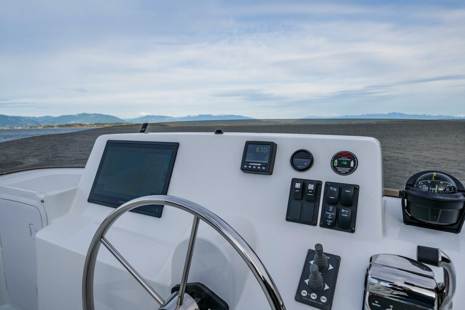 The 2024 Nordic Tug 40 is equipped with a comprehensive Garmin navigation package, featuring dual 16” displays at the lower helm and a single 16” display at the upper station. For enhanced handling, the yacht includes Garmin autopilot with a rudder angle feedback unit and hydraulic steering. Bow and stern thrusters facilitate easier docking and detailed maneuvering, making this yacht a great choice for both seasoned sailors and newcomers.