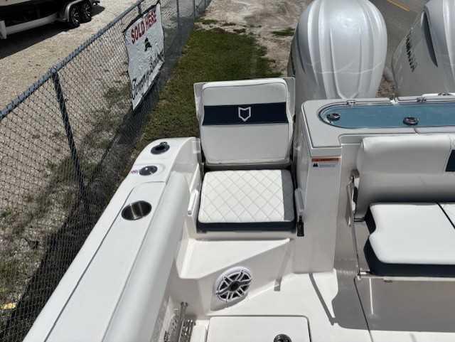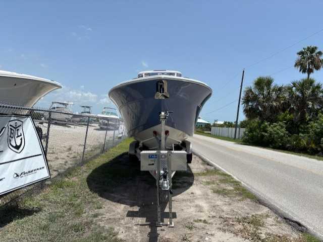 Introducing the 2025 Sea Fox 328 Commander, a 32-foot vessel designed for those who value both performance and comfort on the water. Located in the scenic Punta Gorda, FL, this boat is powered by twin Yamaha outboards, each delivering 350 horsepower. This setup ensures a thrilling cruising speed of 45 mph and a maximum speed of 62 mph, making it ideal for both leisurely cruises and high-speed adventures. The deep Vee fiberglass hull, finished in an attractive Channel Blue, provides a smooth and stable ride, even in challenging waters, while the joystick control steering system offers precise handling.