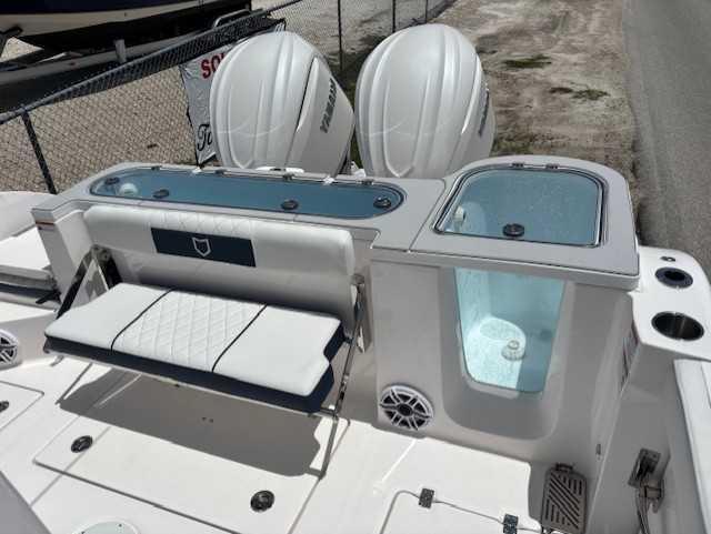 The 2025 Sea Fox 328 Commander is an excellent choice for those seeking a reliable and stylish yacht. It’s equipped with twin Yamaha outboards, each providing 350 horsepower, enabling a cruising speed of 45 mph and a maximum speed of 62 mph. The deep Vee fiberglass hull ensures a smooth and stable ride, especially in difficult waters. With a range of up to 600 miles, it’s perfect for extended journeys or weekend adventures, blending power, comfort, and elegance in one package.