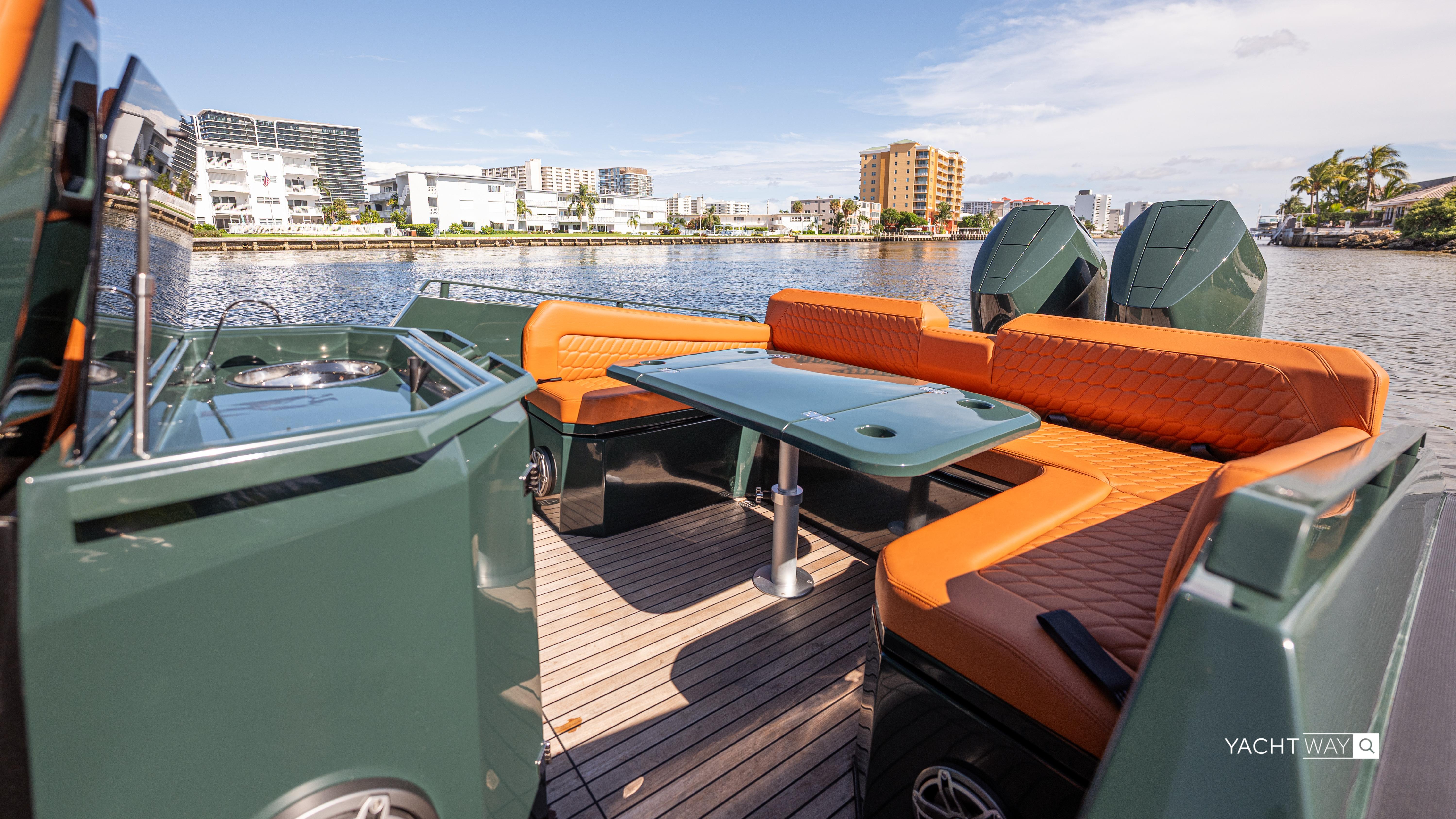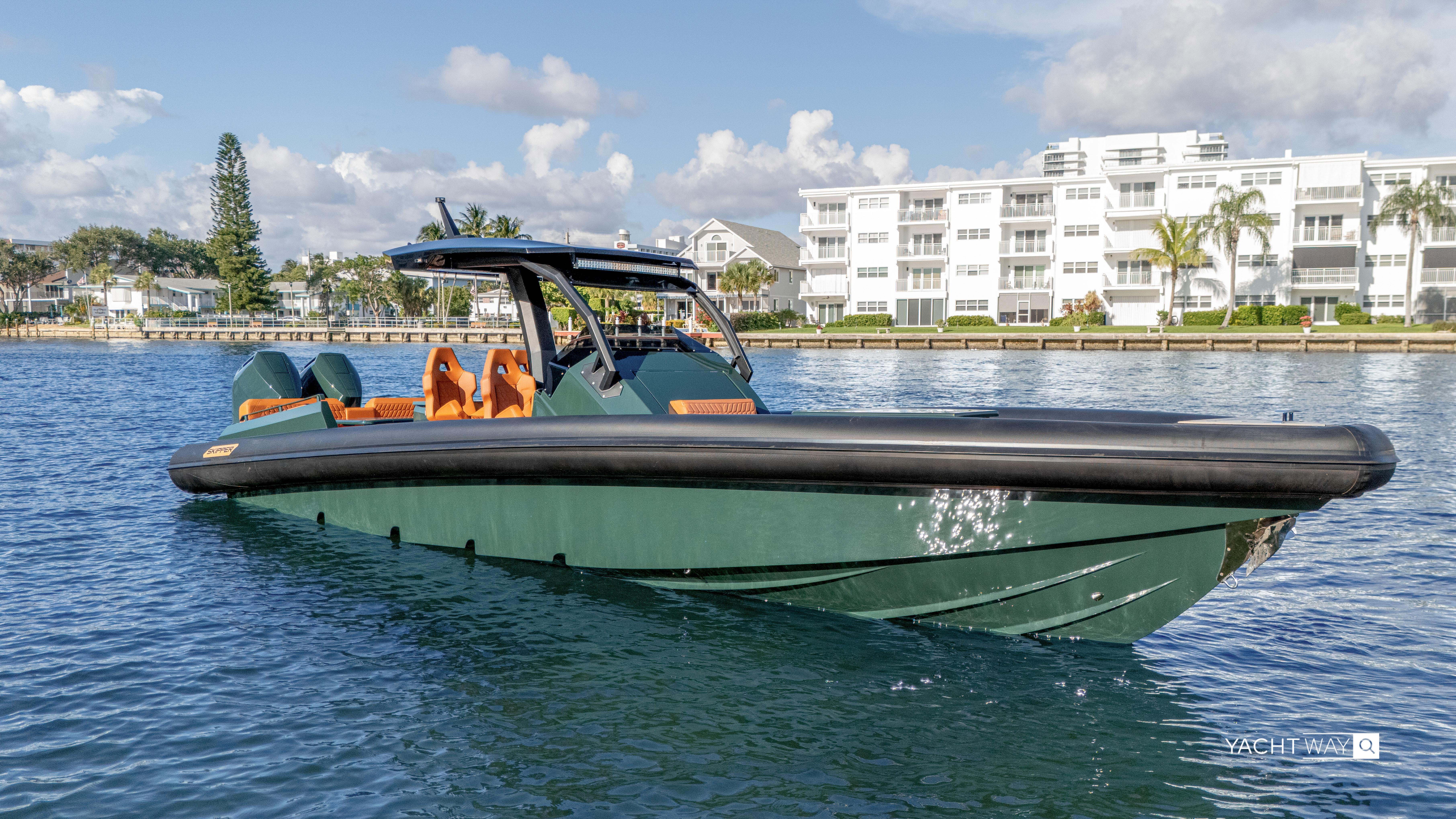 SKIPPER 38 ROLLS ROYCE GREEN ELIMITED EDITION (2025) HIGH-PERFORMANCE RIB REDEFINED  CUSTOM OPTIONS AVAILABLE LUXURY PERFORMANCE. ELITE CRAFTSMANSHIP. NO COMPROMISE. The Skipper 38 isn’t your average rigid inflatable boat—it’s a statement of intent. A fusion of European engineering, head-turning aesthetics, and relentless power, this vessel is built for those who demand thrill without sacrificing refinement. Whether as a performance tender for your superyacht or the centerpiece of your weekend adventures, the 38 commands attention at every dock. KEY HIGHLIGHTS ULTRA-HIGH PERFORMANCE 4-STEP HULLEffortless planing. Lightning-fast acceleration. Built for speed and stability, this hull is the product of advanced R&D and thousands of nautical miles of testing. MERCURY VESSEL VIEW + BOW THRUSTERFull control, seamless monitoring, and easy maneuvering at your fingertips. TWIN CUSTOM-PAINTED OUTBOARDSUnleash pure power and presence on the water with unmatched style. LUXURY-LEVEL DECK FINISHBucket-style seats with Maglia Arctic upholstery, paired with Carbon Black Orca tubes and Skipper racing graphics deliver comfort and cutting-edge looks. PREMIUM GARMIN ELECTRONICSDual Garmin 8416xsv displays, transducer, VHF, and rearview camera ensure you’re always in command—whether cruising or docking. JL AUDIO PREMIUM SOUND PACKAGEElevate every moment onboard with an immersive audio experience built for open waters. DESIGNED TO ENTERTAINElectric bow and stern tables, carbon fiber dash, solid teak floors, freshwater washdown, wet bar with fridge, and full LED lighting package—including underwater, deck, and headlight LED bar. SUN, SHADE & PROTECTIONFiberglass hardtop, stern sunshade, and electric windscreen offer coverage when you want it—exposure when you don’t. CONVENIENT COMFORTSSpacious head with electric toilet, glass sink, and waste tank. Bow storage, second-row seating, and integrated battery charger with shore power. READY TO EXPERIENCE THE SKIPPER DIFFERENCE? If you’re the type of boater who demands performance, precision, and presence, the Skipper 38 is built for you. Unapologetically bold and obsessively engineered—this isn’t just a RIB. It’s a lifestyle machine.