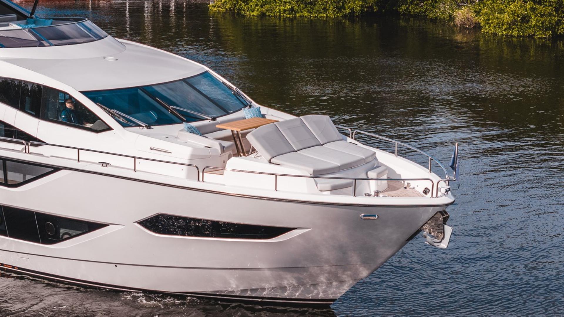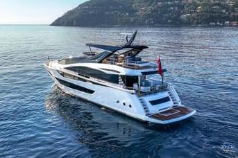 The 2025 Sunseeker 88 Yacht is an excellent choice due to its sleek and luxurious design, accommodating up to eight guests and four crew members comfortably. This yacht features Sunseeker’s unique ‘Beach Club’ with dual staircases and recessed LED lighting, providing a perfect space for entertainment and relaxation. Additionally, the yacht boasts a spacious flybridge with options for an infinity spa bath, enhancing your onboard lifestyle.