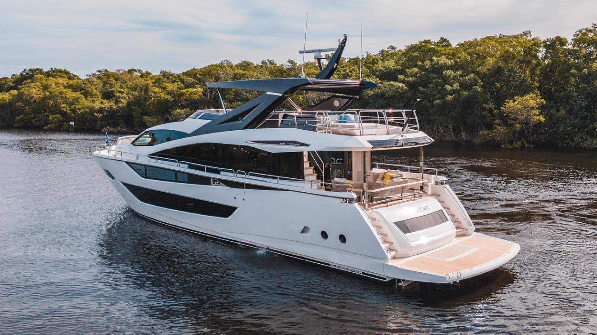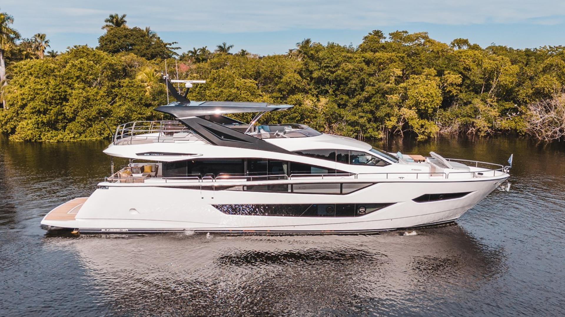 Discover the elegance of the 2025 Sunseeker 88 Yacht, a luxurious vessel located in Miami Beach, FL, priced at $7,999,000 USD. This 88-foot yacht combines cutting-edge design with exceptional comfort, featuring a sleek hardtop roof with an optional central opening canopy. Accommodating eight guests and four crew members, the yacht offers a harmonious blend of style and functionality. The standout ‘Beach Club’ area, complete with dual staircases and recessed LED lighting, provides a perfect space for relaxation and entertainment. With dedicated lockers for two SeaBobs and ample stowage options, the yacht ensures all your storage needs are met. The extended bathing platform is designed for tender use, and there’s an optional flybridge crane for a jet ski, enhancing your on-water experience.