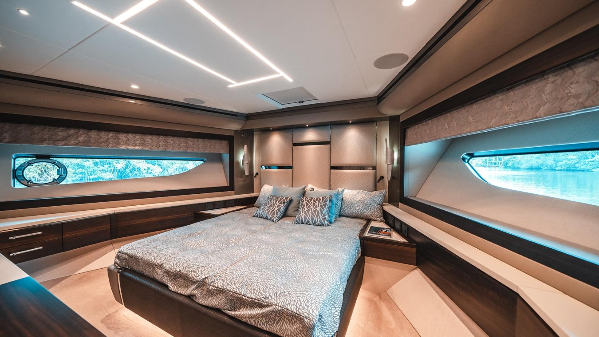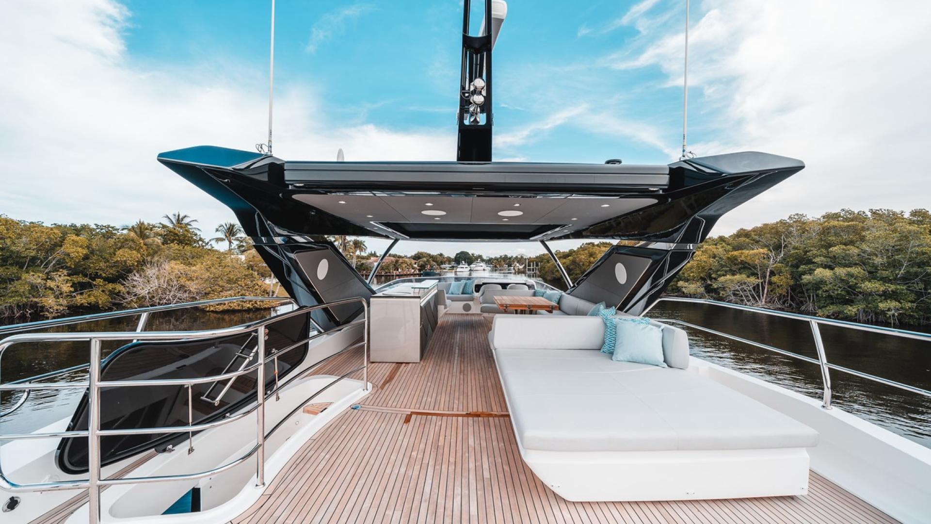 The 88 Yacht is designed with entertainment in mind, offering a feature wet bar complete with an ice maker, grill, and refrigerators. The spacious foredeck with a Portuguese bridge and sunbathing area ensures guests have plenty of options for socializing and relaxing in style. Combined with its advanced multimedia system and luxury finishes, the 88 Yacht guarantees a remarkable entertainment experience.